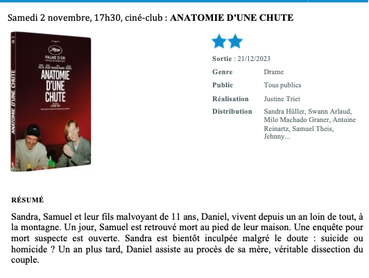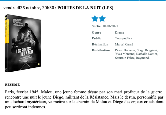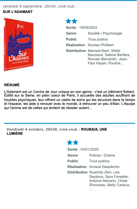 Le comité de programmation a suivi l’idée exprimée par plusieurs adhérents : voir ou revoir des films passés les années précédentes. Voici ce qui vous sera proposé en 2025.